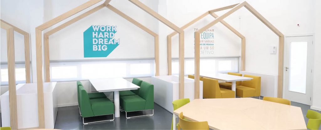 • A Sala Colaborativa, pensada para a experimentação e co-criação de soluções com empresas, autarquias e instituições locais;