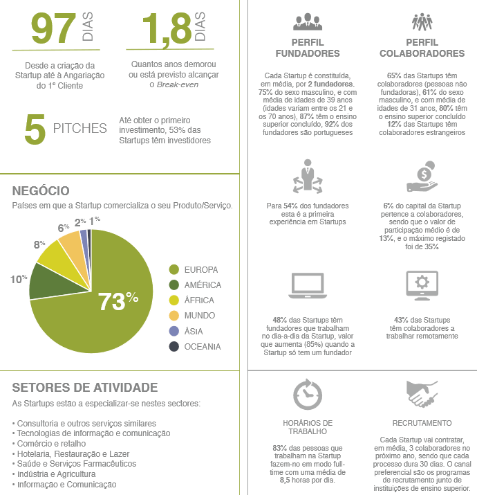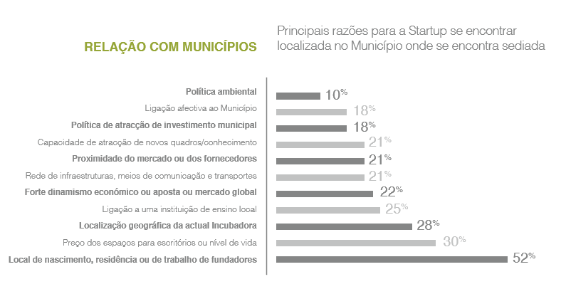 As startups reconhecem o papel dos municípios, em especial a disponibilização de espaços físicos (26% não pagam renda e 43% pagam menos de 250 Euros) e a realização de eventos relacionados com empreendedorismo, inovação e tecnologia.